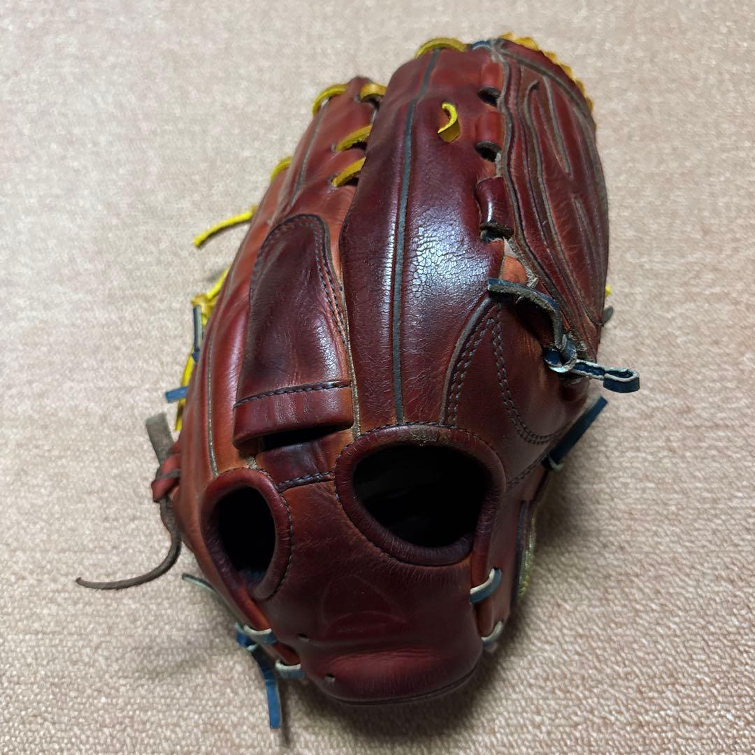 ご覧いただきありがとうございます。2024年8月に購入し1年使いました。日本製造で値段が少年用にしては高かった覚えがあります。手口が被せ止め、革紐を水色にかえてます。付属品はグラブ袋になります。スラッガーにしては浮きが無いので当たりかと思います。よろしくお願い申し上げます。